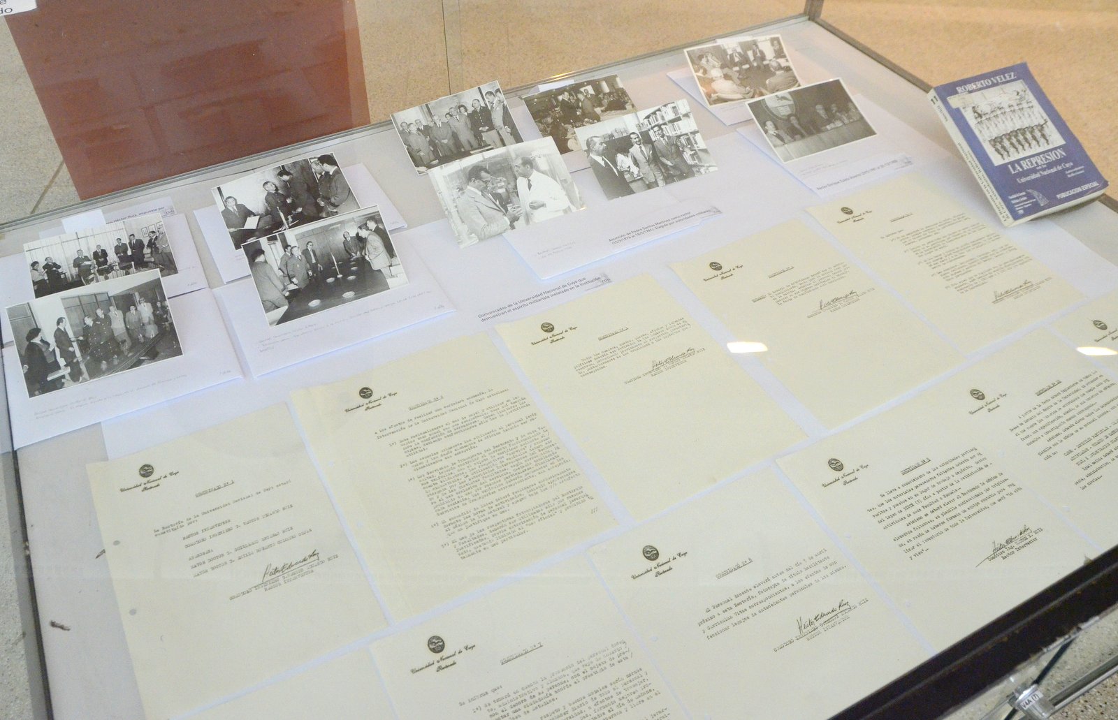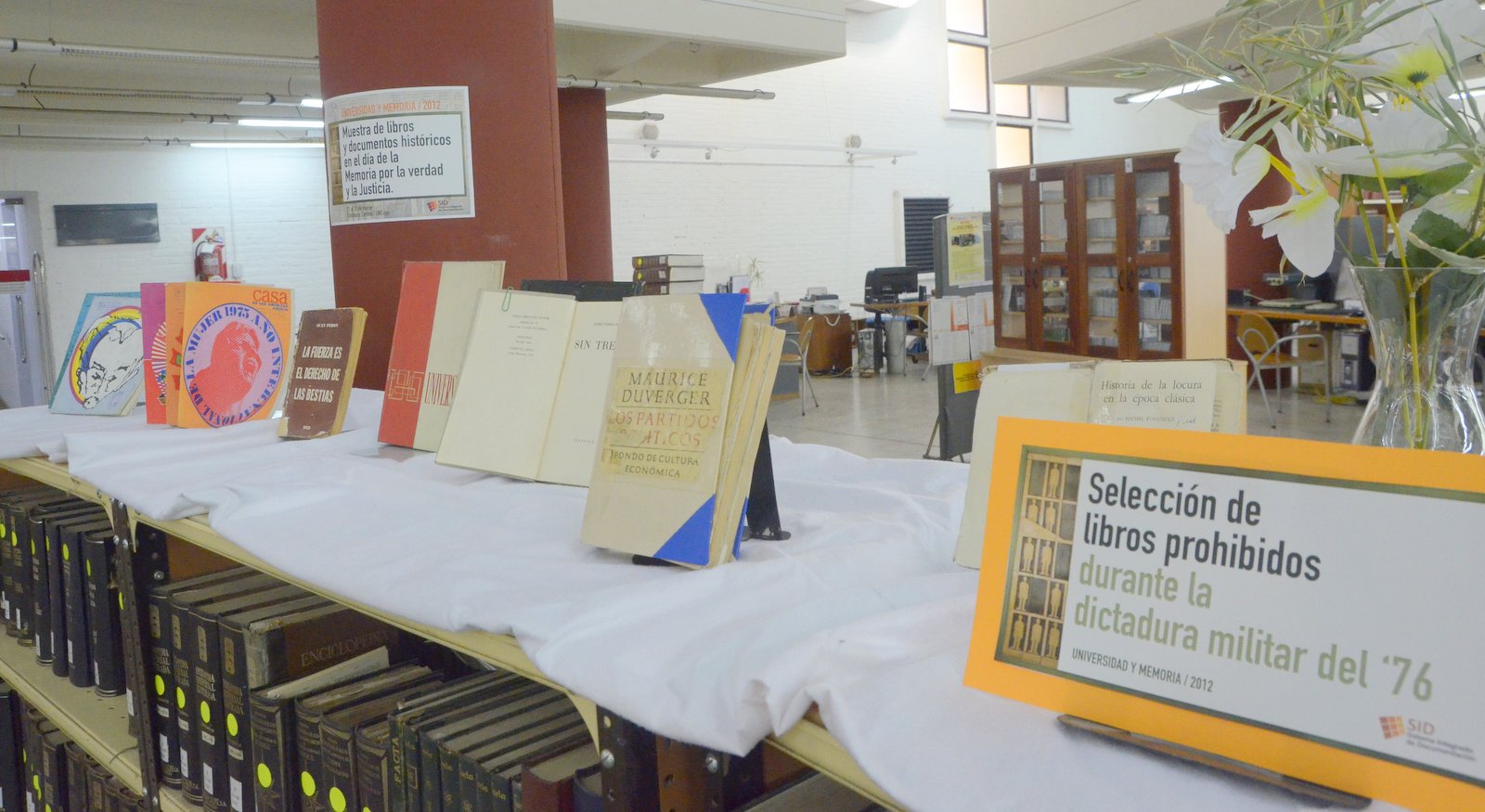 Se exhibe una serie de libros y autores de Mendoza, Argentina y del mundo que fueron prohibidos durante el gobierno de la Junta Militar del ’76 y que hoy forman parte del acervo de la Biblioteca Central. Estos libros se mostrarán junto con un listado completo de las obras que fueron retiradas de circulación y prohibidas bajo amenaza de persecución política e ideológica. También se expondrán fotos y comunicados oficiales de las autoridades universitarias de la época. Éstos son documentos institucionales que reflejan el carácter militarista de la gestión en esos años y que tenían influencia directa en el funcionamiento de la vida universitaria.