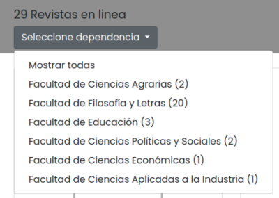 - Presentar el selector de revistas por dependencia (en nuestro caso por facultades)