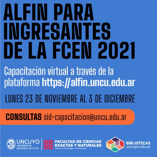 ALFIN para ingresantes de la FCEN. Capacitación virtual a través de la plataforma https://alfin.uncu.edu.ar Invitamos a las y los estudiantes