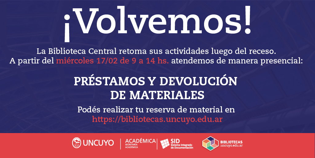 La Biblioteca Central retorna a sus actividades luego del receso. Solicitá tu préstamo a través del servicio de reservas en